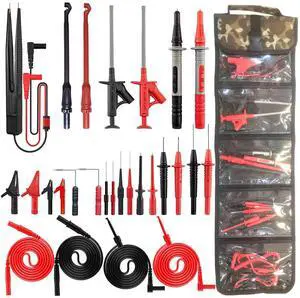 28PCS Multimeter Test Leads Kit with 6 Pockets Roll Up Tool Bag, Replaceable Wire Piercing Probes, Alligator Clips, Test Hook Clips, Test Tweezer for Digital Electrical Multimeter Testing