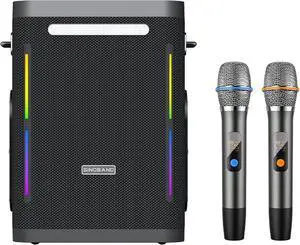 Karaoke Machine with 2 Wireless Microphones, Portable Bluetooth Speaker for Adults & Kids with RGB Light PA System Treble & Bass, Support TWS/USB/AUX/TF Card/REC, Supply for Home Party Outdoors
