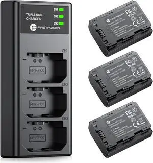 NP-FZ100 Battery 3-Pack and Triple Slot Charger for Sony FX3, FX30, A7 III, A7 IV, A7C, A9, A6600, A6700, ZV-E1, ZV-E10 II, A7R3, A7S III/A7S3, A7R III, A7R IV, A7R V Camera