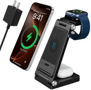 Smartphones, Headphones, Smartwatches, 3 in1 Magnetic Wireless Charger, Fast Charging, Charging Indicator, phone watch airpods charging station, Wireless Charging, iphone and watch charging station, phone and watch charging station