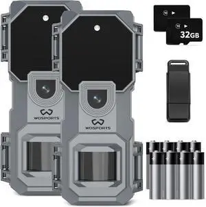 WOSPORTS Trail Camera 2 Pack 32MP 1080P HD,Deer Camera with 32GB SD Card,Game Cameras with Night Vision Motion Activated Deer Camera for Wildlife Monitoring