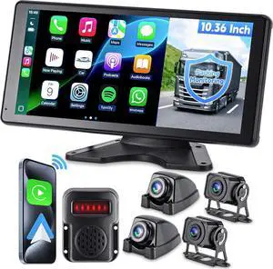 RV Camera System with CarPlay & Android Auto, 10.36'' Monitor with Blind Spot Detection/Parking Monitoring/Voice Control/DVR/Navigation, 4 1080P Backup Camera System for Semi Truck Trailer Camper