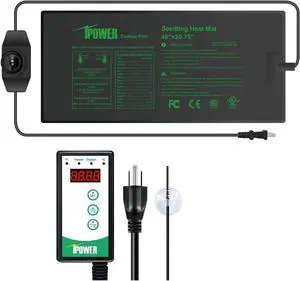 Digital Heat Mat Thermostat Controller and 48" x 20.75" Carbon Film Seeding Warm Hydroponic Pad with Temperature Adjustable Knob
