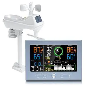 Wireless Weather Station for Home, Outdoor Weather Stations with Rain Gauge, Wind Speed/Direction Sensor, Indoor Outdoor Thermometer Humidity, Forecast, Barometric Pressure, Radio Clock