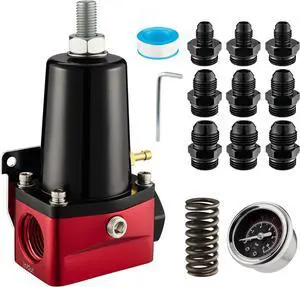 Fuel Pressure Regulator 30-140PSI Adjustable Pressure Range, 10AN Bypass Return EFI Fuel Regulator with Gauge and Fitting Red
