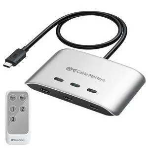 Cable Matters 20Gbps USB C Switch, 3-in-1-Out, Supports Up to 8K@30Hz on Windows, 4K@60Hz on macOS, 140W PD, for Sharing a USB-C/Thunderbolt 4 Monitor or Dock (Not Work with Captive Cable Docks)