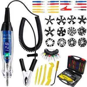 101PCS Automotive Test Light Probe Kit, 3-72V DC LED Digital Automotive Circuit Tester, Car Retainer Clips & Fastener Remover & Terminal Pin Removal Tool Set with Black Carrying Case