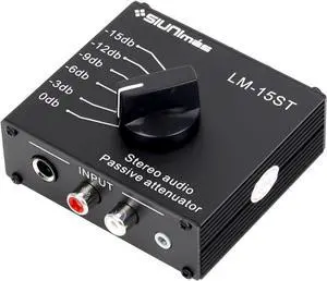 RCA&/AUX/1/4 1/8 Passive Stereo Inline Variable Audio Attenuator Adjustable Audio Attenuation Box for Home Theater and Official Audio Performance Playing (SIM-at-AUX/RCA/TS)
