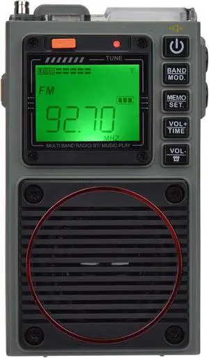 New Ver Shortwave Radio with Bluetooth, TF Card, Flashlight, Backlit Keys, Digital Recording, Alarm Clock, Sleep Timer, AA & Rechargeable Battery Powered, Type-C & ANT Jack