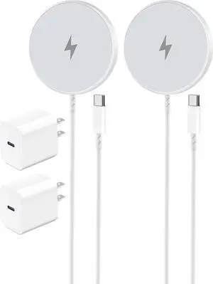 Magnetic Wireless Charger for Apple iPhone 17/16/15/14/13/12/11/AirPods, 2-Pack Fast Charging Long Cable 10ft Magnet Pad & 2-Pack Type-c Charger Block, White