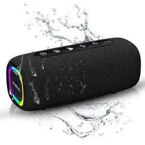 Portable Bluetooth Speaker: IPX5 Waterproof, 20W Dolby Stereo Sound, Deep Bass, Upto 25H Playtime, LED Lights, TWS Pairing, BT5.3, for Home/Party/Travel/Beach/Outdoor/Pool/Gift (Black).