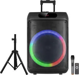 IQ Sound IQ-6915DJBT 15 Portable Bluetooth Party Speaker w/ 40W RMS, TWS, LED Lights, USB/SD/AUX, FM Radio, Recording, Wireless Mic & Remote, Rechargeable Battery, Wheels & Handle for Events & Home