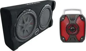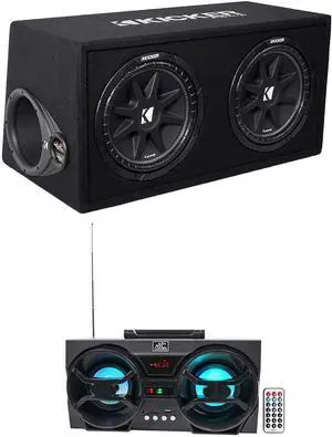 KICKER Audiosavings Bundle 43DC122 Comp Dual 12" Subwoofers in Vented Sub Box Enclosure, 2-Ohm Bundle with NYC Acoustics NPB3 Dual 4" 30w Bluetooth Boombox Speaker w/USB, SD, LED+Remote (2 Items)