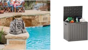 Alpine Solar-Powered Bluetooth Outdoor Rock Speaker and East Oak 31 Gallon Outdoor Storage Box Bundle