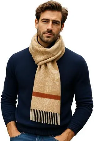 Cashmere scarf for Men,Winter Warm soft Tassel Jacquard 100% Cashmere Scarves with Gift Box Packaging