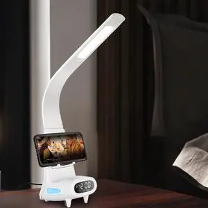Multi Functional Smart Eye-Care Desk Lamp Wireless Charger & Digital Alarm Clock Gesture Control Adjustable Light 15W Fast Charging Hidden Phone Stand, Date Timer Display Wake-Up Light-TX79 White