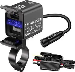 Motorcycle Battery Charger, Motorcycle USB Charger 100W Fast Two-Way Charging Dual PD Type C & QC 3.0 Motorcycle Charger with Voltmeter Waterproof Emergency Countermeasures for Weak Batteries