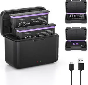 2-Pack Battery and Fast Charger Box for Insta360 X5, 2800mAh Replacement Batteries Pack and Dual Channel Fast Charging Portable Case for Insta 360 X5 Action Camera(Battery*2 and Charger*1)