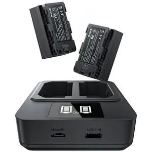 2 Pack LP-E6NH Batteries and 2-in-1 Dual Fast Camera Charger for Canon EOS R5,R5 C R6 Mark II,R6 Mark III, 5D 6D 7D Mark II III IV, 5DS, 60D, 70, 80, 90D, 12400mAh Capacity, 20W USB C, Digital Display