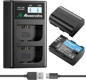 LP-E6NH Battery 2950mAh and Dual USB Charger for EOS R,R5,R6,R6 Mark II,R7,90D,80D,70D,60D,5D II,5D III,5D IV,5Ds,6D,6D II,7D,7D Mark II Cameras
