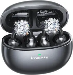 Kinglucky Jewelry-Inspired Clip-On Earbuds with Diamond Earrings, Comfortable Fit & 40H Playtime Open Ear Bluetooth 5.4 Wireless Headphones for Women, Small Ears, Sports & Workouts (Black)