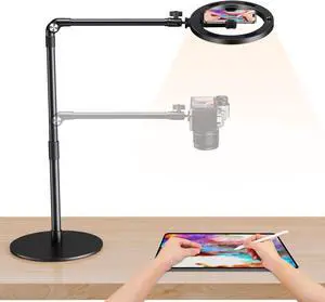 12" Ring Light with Overhead Phone Mount, LED Ring Light with Phone Holder and Stand, Desk Light Ring for iPhone,Cameras, Selfie Light for Live Streaming,Video Recording, Content Creation