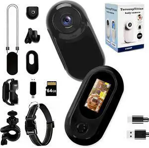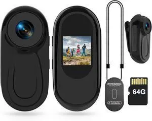 Mini Body Camera 1080P with 64GB Card, Audio & Video Recording, Wearable Action Body Cam, Thumb-Size POV Camera, Portable Recorder for Daily Life, Travel, Pets & Motorcycle Riding (Black)
