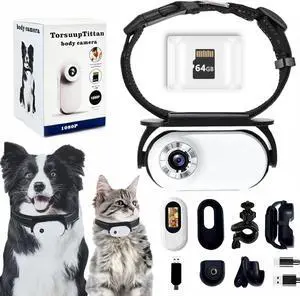 1080P Dog & Cat Camera Collar with 64GB Card, Mini Wearable POV Camera for Humans, Wireless Pet Cam for Video/Photo, Portable Sport Action Camera with Multi-Mount Accessories for Vlogging & Pets