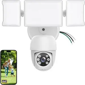 Floodlight Camera Outdoor, 2K QHD Smart Home Security Cam with Motion-Activated, 5500LM Brightness 5 Heads Light, 360° Pan & Tilt, 2-Way Audio, Cloud/SD Storage, Color Night Vision