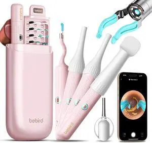 Home 30S Ear Wax Removal, Smart Ear Care System Cleaner Kit, Wireless Scope Silicone Flex Earscope Camera, UVC LED Light, Visual Wax Cleaning Dropper, Wax Removal Tweezer Tool Adult/Kids