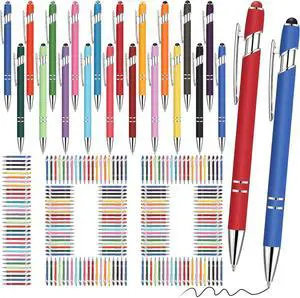 100 Pieces Ballpoint Pen with Stylus Tip Click, 2 in 1 Black Ink, 1.0 mm Medium Point Stylus Metal Pen for Touch Screen Tablet (Assorted Colors)