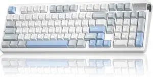Crystal Amethyst Basecamp 65% Mechanical USB Wired Gaming Keyboard, White Flame Switches, Programable RGB, Transparent/Translucent, Hot-Swappable, Deep Thock Creamy Sounding PC Keyboard