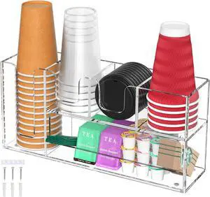 Acrylic Vertical Coffee Cup and Lid Dispenser, Coffee Condiment Organizer, 9 Compartment for Disposable Paper & Plastic Cup, for Cabinet Station Home Countertop Bar 13''l x 13''w x 12''h