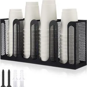 Metal Mesh Cup and Lid Holder Coffee Paper Cup Dispenser Lid Holder Storage Organizer Countertop or Wall Mount for Coffee Bar, Kitchen, Breakroom (4 Compartments)