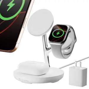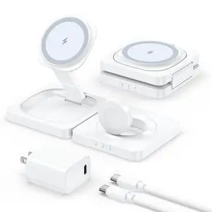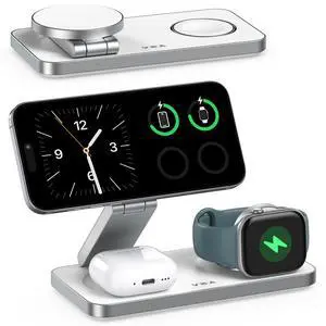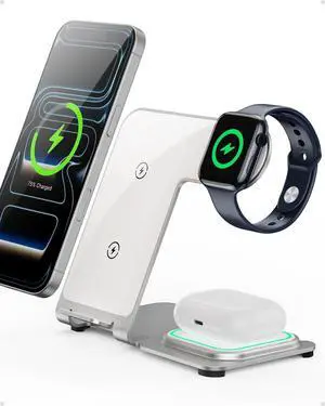 Compatibility: Compatible with iPhone 17/ 17 Air/ 17 Pro/ 17 Pro Max / 16/ 16 Plus/ 16 Pro/ 16 Pro Max/iPhone 15/ 15 Plus/ 15 Pro/ 15 Pro Max/ 14/ 14 Plus/ 14 Pro/ 14 Pro Max/ 13/ 13 mini/ 13 Pro/ 13 Pro Max/ 12/ 12 mini/ 12 Pro/ 12 Pro Max, Compatible with iWatch 10/9/8/7/6/5/4/3/2/SE/Ultra/Ultra 2, Compatible with AirPods 2/3/4/Pro/Pro 2(Note:For AirPods 2/3/4 come in 2 versions,make sure to use wireless charging case), Compatible with Apple Watch 10/9/8/7/6/5/4/3/2/Ultra 2/Ultra 1/SE, Compatible with AirPods 3/2 Pro 2/Pro. (Note: Please use Mag-Safe phone case or without case for wireless charging), 3 in 1 Charging Station Compatible with Magsafe Charger Wireless Charger Stand for iPhone 17 16 15 14 13 12 Series, Wireless Charging Station for AirPods, Wireless Charging Stand for iWatch S...
