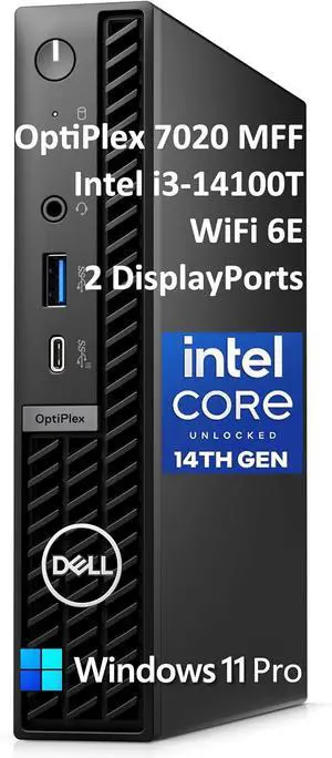 OptiPlex 7020 MFF 7000 Mini Business Desktop Computer, 16GB DDR5 RAM, 512GB PCIe SSD, 14th Gen Core i3-14100T (Beat i5-12400T), WiFi 6E, 2 DisplayPorts, HDMI, Type-C, Windows 11 Pro