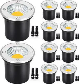 Low Voltage Landscape Well Lights with Wire Connectors, 12W LED, IP67 Waterproof Outdoor In-Ground Garden Lights 12V-24V Warm White for Pathway Driveway Deck (10 Pack & Connectors)