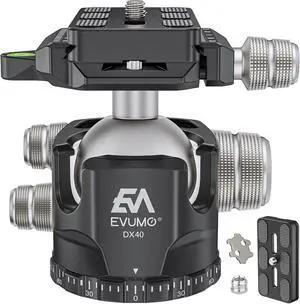 EVUMO DX40 Tripod Ball Head, 40mm Low Profile Heavy Duty Ball Head Mount, Panoramic CNC Ball Head with Two Arca Swiss Quick Release Plate for Camera Tripod Monopod DSLR Camcorder, Max Load 44lb/20kg