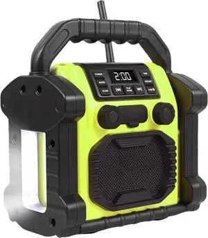 Outdoor Radio Waterproof Bluetooth Speaker, 30W IPX 66 Digital Manual FM Clock Radio, Portable with LED Lights, Anticollision FM Radios for Constrution Site/Outdoor/Fishing/Camping