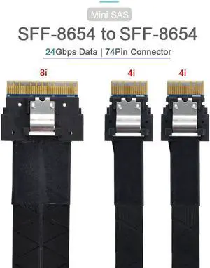 SAS 4.0 SFF-8654 8i 74pin Host 50cm PCI-E Slim Line to SFF-8654 Slim SAS Target