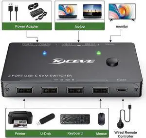 8K KVM Switch HDMI-compatible 2x1 With 3xUSB-C 4xUSB3.0 Switcher 8K@60Hz 4K@120Hz for Monitor USB Keyboard Mouse U Disks Printer