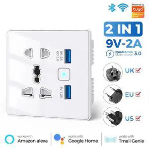 Smart Wi-Fi+BLE Wall Socket with USB-C PD 3.0 and USB-A QC 3.0 Fast Charging Alexa Google Home 13A/2860W Max Load White 2USB WIFI