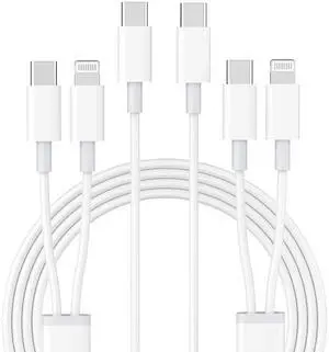 USB C to Lightning Cable 3Pack 6FT [MFi Certified] iPhone Fast Charger Cable USB-C Power Delivery Charging Cord for iPhone 14/13/12/11/XS/XR/X/8/iPad White