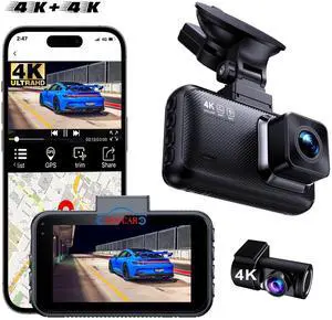 Real 4K 5G WiFi Dual Dash Cam with WiFi GPS,2160P Car Camera with Free App,UHD4K+1080P Driving recorder,1.5Inch Car Camera,24/7 Parking Mode,Night Vision,Motion Detection,Gravity sensor,Loop Re