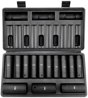 1/2" Drive Impact Socket Set, 13 Piece Deep Socket Set Metric 10-24mm, 6 Point CR-V Alloy Steel for Auto Repair, Easy-to-Read Size Markings, Rugged Construction, Includes Storage Case