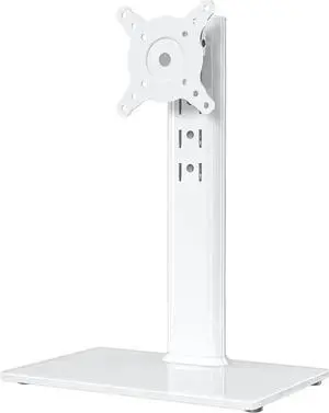 Single LCD Computer Monitor Free-Standing Desk Stand Riser for 13 inch to 32 inch Screen with Swivel, Height Adjustable, Rotation, Holds One (1) Screen up to 77Lbs(HT05W-001) White