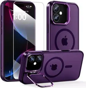 Magnetic for iPhone 17 Case with Stand [Fit for MagSafe] Camera Kickstand Translucent Matte Shockproof Phone Protector Cover for iPhone 17 with Screen Protector Purple