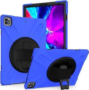 Shockproof Case Full-Body Heavy Duty Cover Stand with Shatterproof Ceramic Screen Protector for Apple iPad Pro 12.9 3rd 4th Gen (Blue)