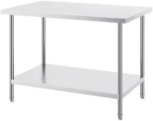 VEVOR Stainless Steel Prep Table, 30 x 48 x 34 Inch, Heavy Duty Metal Worktable with 3 Adjustable Height Levels, Commercial Workstation for Kitchen Garage Restaurant Backyard
