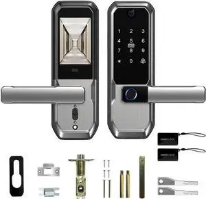 Keyless-Entry Fingerprint Digital Smart Lock: Electronic Door Lock with Code Passcode, Electric Door Knob, Biometric Door Handle (Silver)